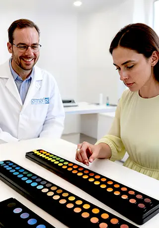 En Servicios Médicos San Ignacio aplicamos el Test de Farnsworth, una prueba especializada para evaluar la discriminación y percepción del color. Esta prueba es fundamental para detectar deficiencias cromáticas que pueden afectar el desempeño laboral en tareas donde la percepción del color es crucial.